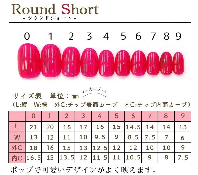 掲載のネイルチップは、ラウンドショートを使用。